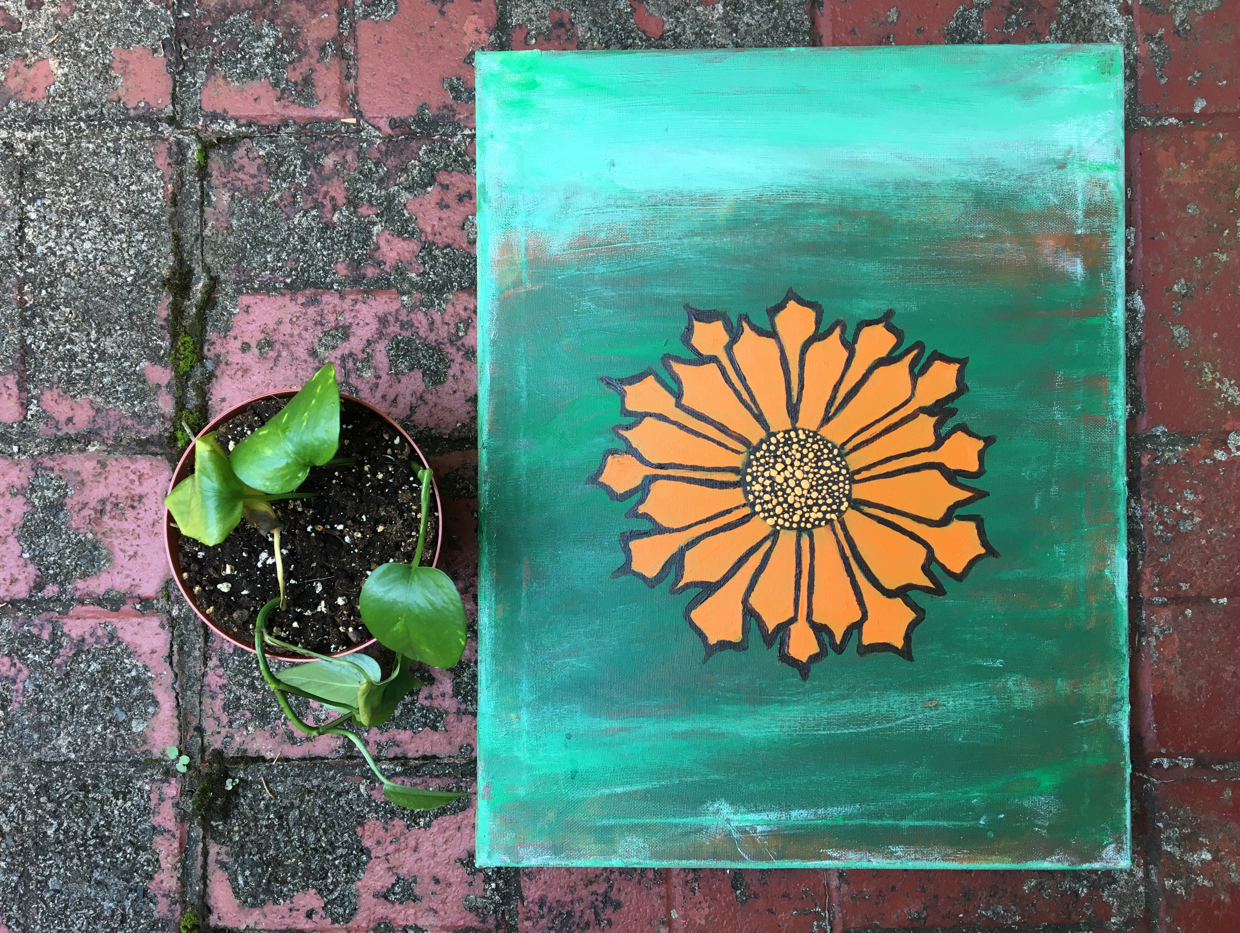 Potted Golden Pothos cuttings // painting by Robert Fiacco